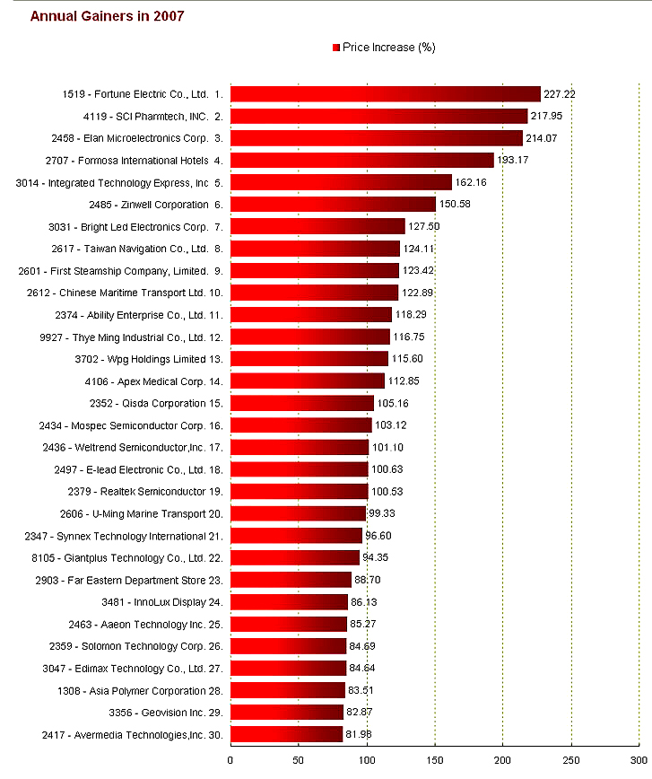Note: It is not include that the closing price of stock is less than NTD 10 at the end of 2006.