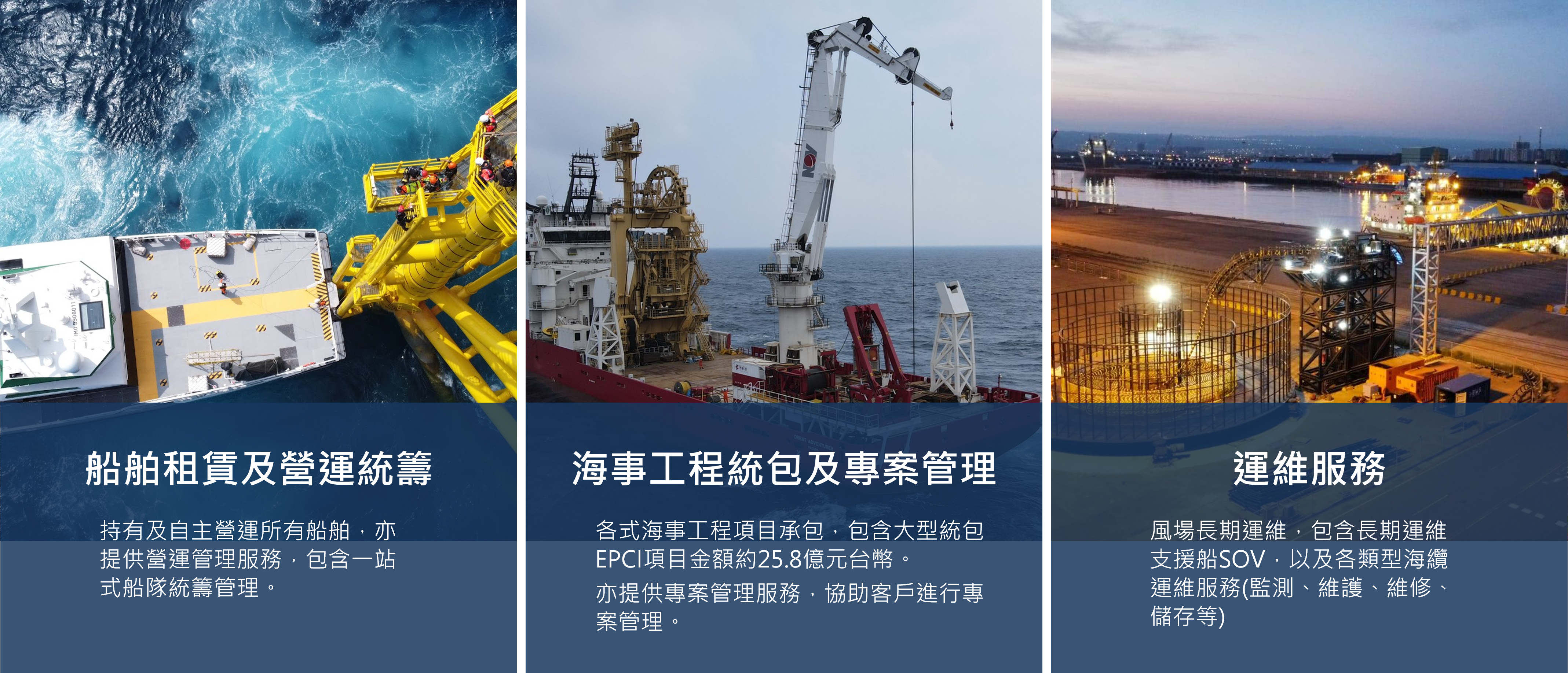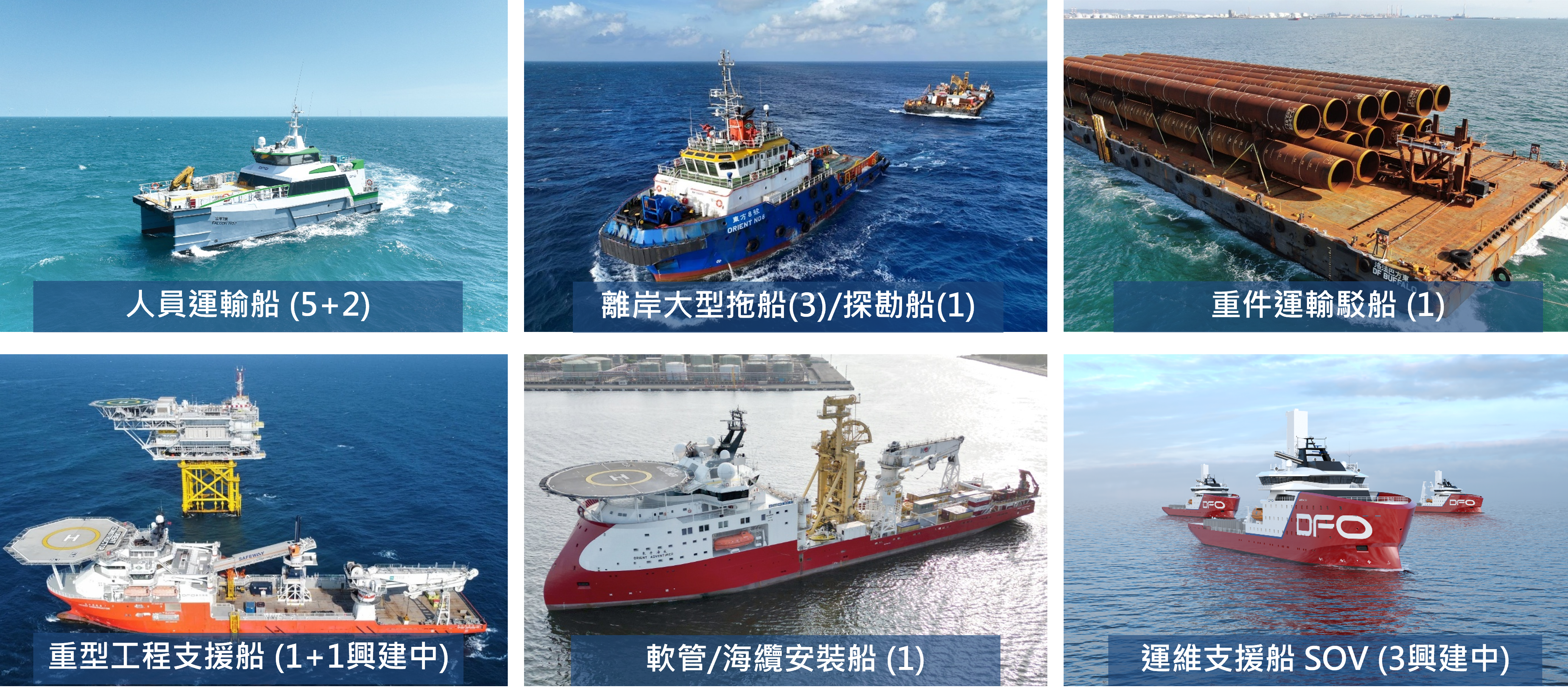 Dong Fang Offshore Co., Ltd. (hereinafter referred to as “Dong Fang Offshore”) was established in July 2019. It primarily provides vessel leasing and maritime engineering-related services, proactively cultivates professional talent in maritime engineering, and possesses a comprehensive and experienced maritime team. Through extensive concrete experience in offshore wind power projects, Dong Fang Offshore possesses a comprehensive understanding of industry operations and market demands. Moreover, its service quality has earned the trust and recognition of clients and has been audited and approved by numerous major developers and turnkey contractors. As one of Taiwan’s largest operators of offshore marine engineering vessel fleets, Dong Fang Offshore demonstrates exceptional expertise.