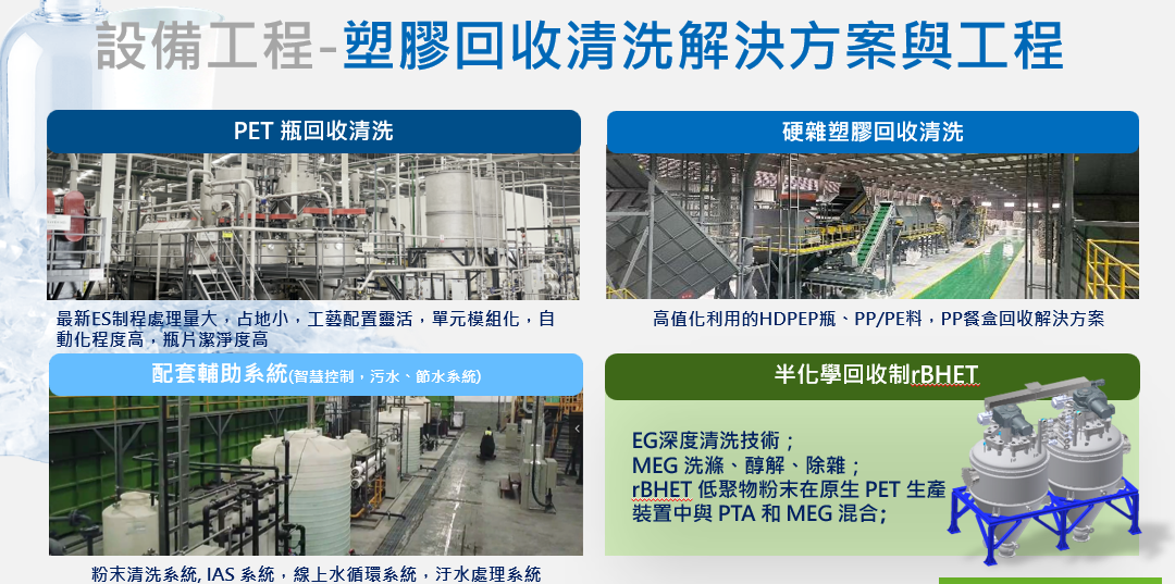 寶綠特資源再生工程股份有限公司(以下簡稱寶綠特)專精於塑膠的回收清洗完整解決方案以及再生纖維、再生聚酯原料的研發生產,業務分為「設備工程事業」和「生產事業」兩大部分,產品為設備工程、聚酯纖維以及再生聚酯粒,可應用於食品/非食品包材、服飾、衛生材料、汽車內飾等多種領域。