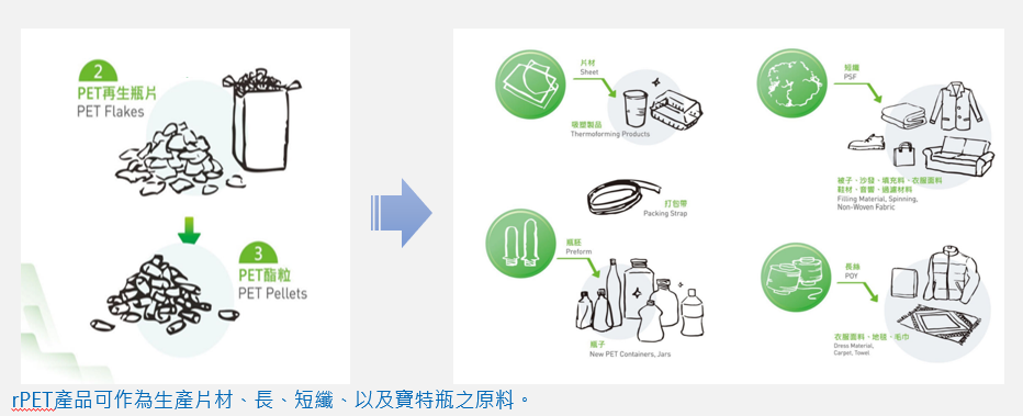 寶綠特的生產事業專注於生產高品質且具有高附加價值的再生聚酯產品,以瞄準中高端市場為主。其中,再生聚酯粒方面,寶綠特近年積極研發用於食品包裝的食品級rPET顆粒;而化纖產品方面,寶綠特採取差異化策略,以自身所擁有的創新技術優勢,瞄準阻燃纖維、色絲產品等利基市場以避開短纖市場上的同質化競爭紅海。這類產品對生產技術的要求更高,且附加價值也高於一般用途的再生材料,有助於提高集團整體競爭力。