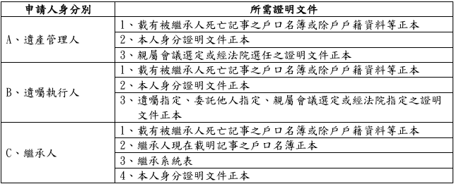 遺囑執行人開立金融機構及證券商帳戶