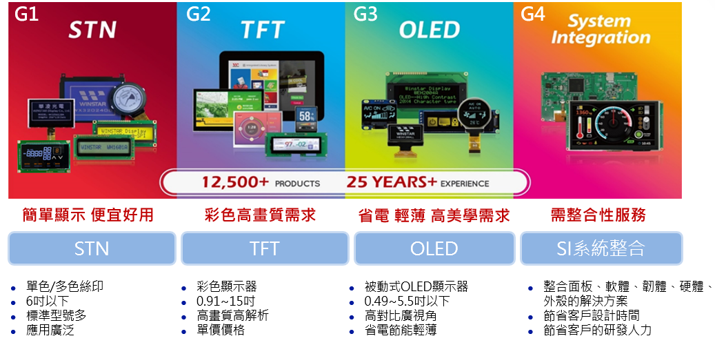 除此之外,華凌積極研發系統整合產品服務,整合硬體、韌體與軟體技術,提供客戶STN、TFT及OLED的系統整合解決方案,協助客戶設計最佳化,開發高效率、高彈性、高附加價值及高成本效益的產品服務,藉此提升華凌技術價值鏈服務、競爭門檻及客戶黏著度,為客戶解決在顯示器產品整合上的創新解決方案。